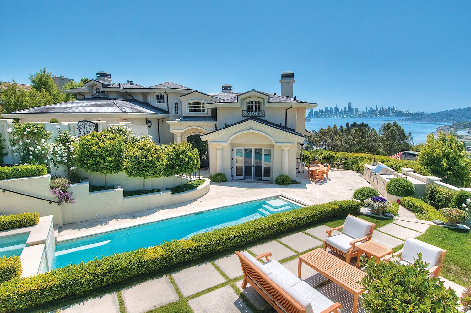 Ready for move-in, 91 Via Los Altos in Tiburon is a contemporary yet classic home with panoramic vistas high atop Tiburon. Enjoying direct San Francisco skyline views, the sun-soaked hillside home is ideal for a family or entertainer, with manicured, view-side gardens furthering the appeal of this pristine oasis, listed for $6,995,000.