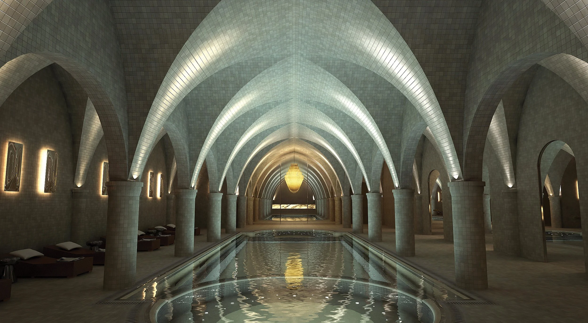 Lawson Robb is currently designing a 50,000 square foot new build family home in Emirates Hills, Dubai, with views over the Address Montgomerie golf course. For this lavish home, Lawson Robb created interiors that balance opulence and tradition with a contemporary twist, catering to both family function as well as prowess for entertaining. Perhaps our favorite space, and the best example of Lawson Robb flexing their design muscles, is the master bathroom.